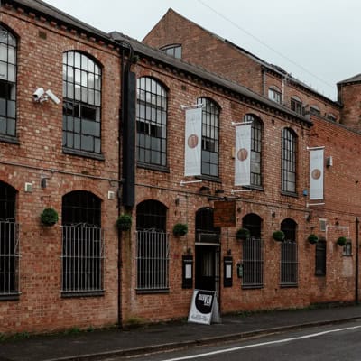 A former Victorian textile mill with large Victorian windows. The Westgate Suite is an impressive space with beautiful cast iron windows on either side, high ceilings, bespoke lighting and a classic leather clad bar.