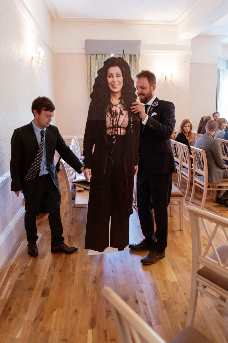 If you think a micro wedding means “small and simple”, Claire and Ralph would like a word. This was an autumn wedding filled with colour, personality, dogs, a Cher cardboard cutout and a micro pub reception that honestly could not have suited them more. Claire and Ralph planned a laid back day at Arnot Hill House with just 20 of their favourite people.
