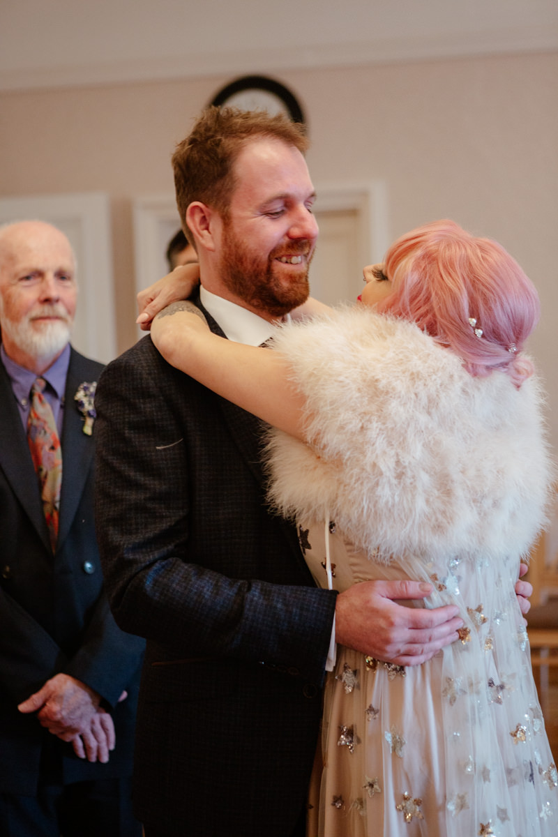 A micro pub and a micro wedding are basically best mates. You get atmosphere without needing 100 guests to create it. It feels full, lively and intimate all at once. No echoey function room or sad dancefloor waiting to be filled. It felt like a proper celebration, just scaled to fit them. The Blues Dawg reception vibes are cosy and laid back with everyone chatting, good drinks and zero pressure. If you are planning a pub wedding or looking at The Blues Dawg for a reception after Arnot Hill House, it is such a solid option for smaller guest lists.